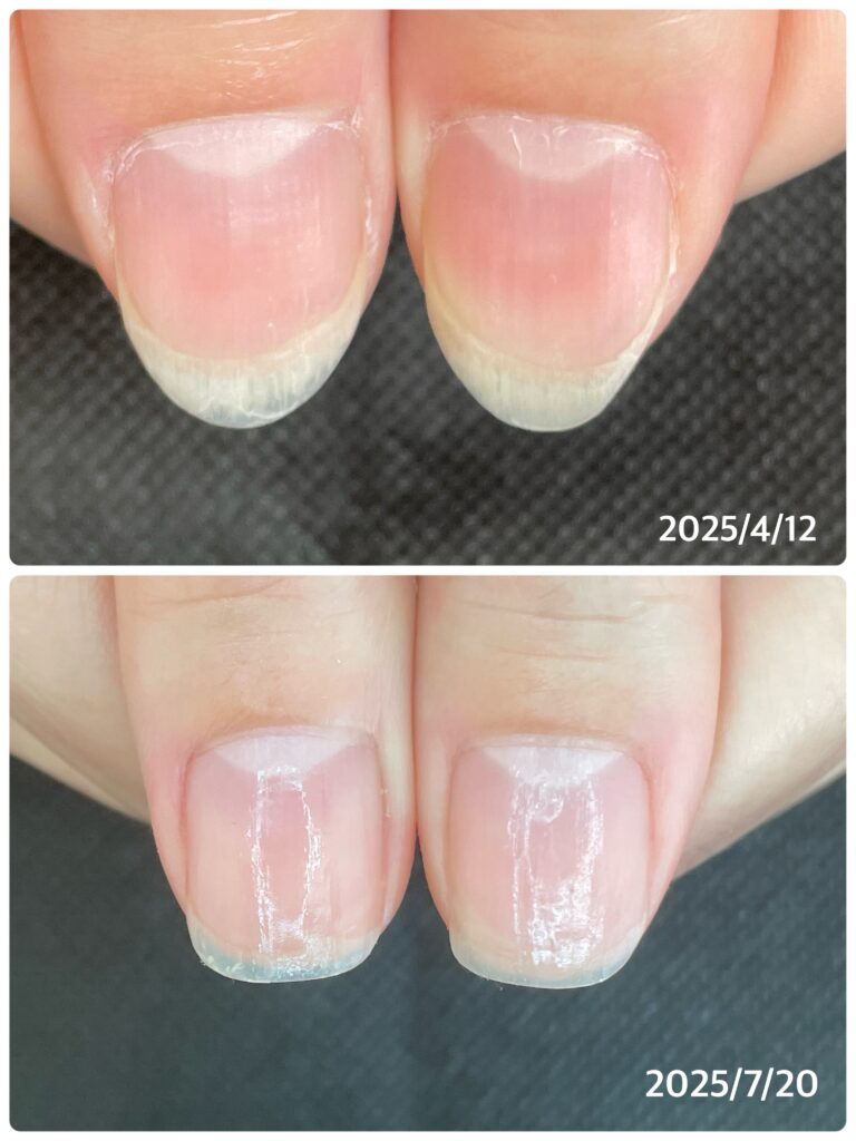 ✅二枚爪や割れ爪も、繰り返しのケアで美しく健康な状態に戻っていく。