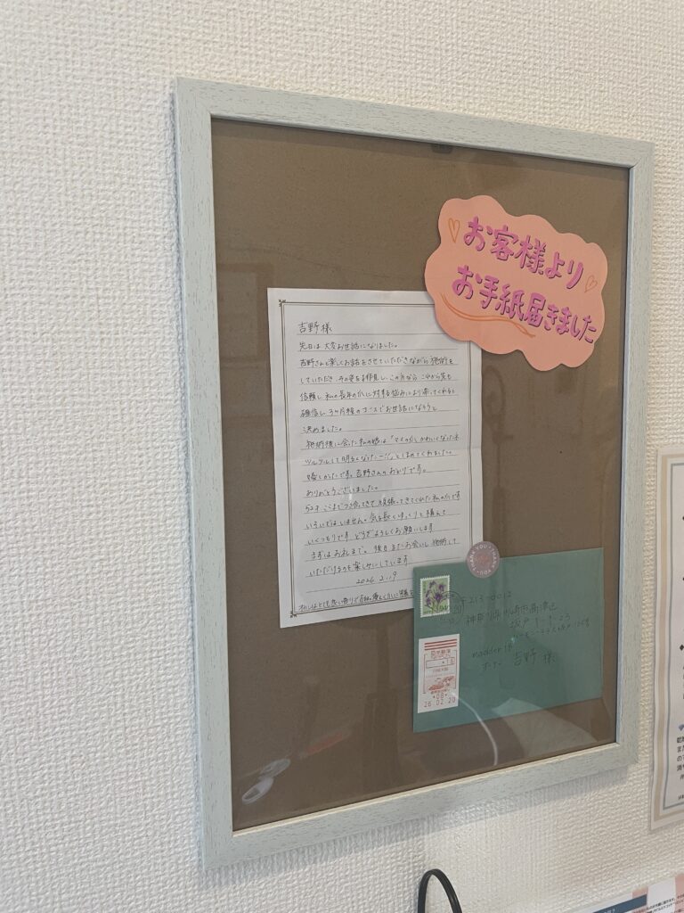 ご来店される他のお客様も、このお手紙を読んで「勇気をもらいました」と微笑んでくださることが多いんですよ。
